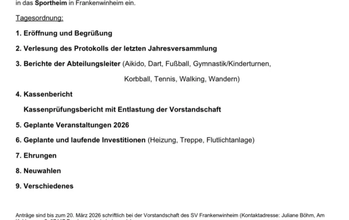 Aktuelles aus dem Vereinsleben, Bilderserien, Einladungen und Termine des Sportvereins Frankenwinheim findest du gleich hier: